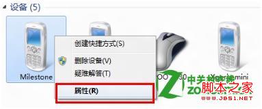 2、找到“设备”中的曾经链接过的蓝牙设备点击右键“属性”;
