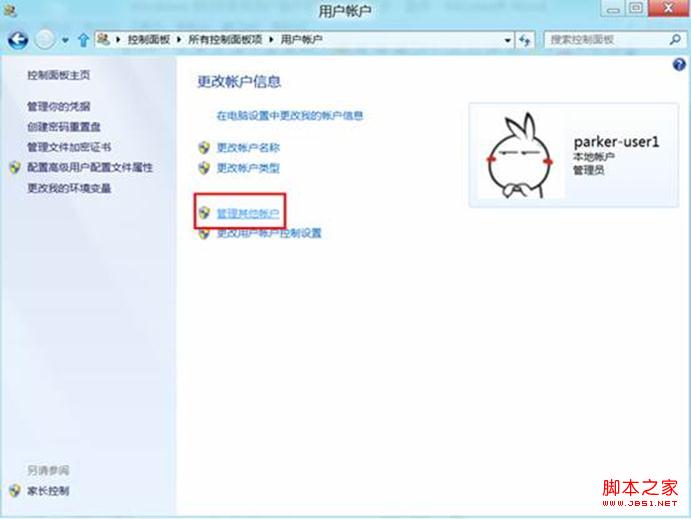3、在“用户账户”下右侧菜单选择“管理其他账户”。参见下图