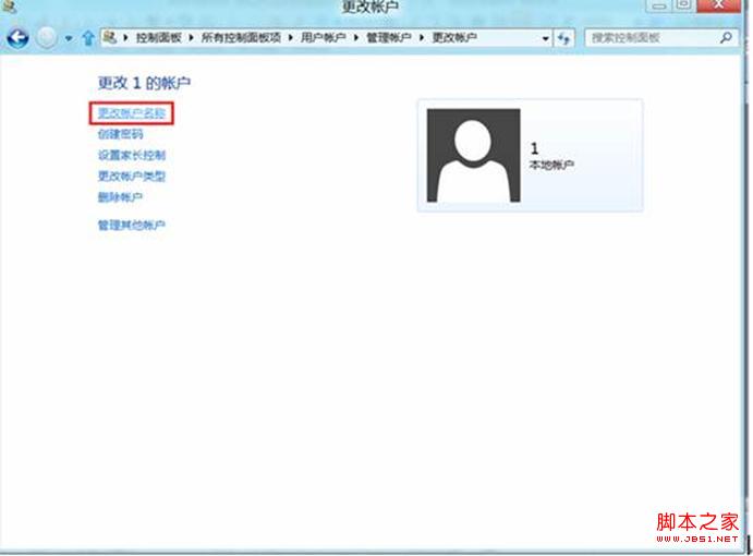 5、在“1”的账户下,点击选择左侧的“更改账户名称”。参见下图