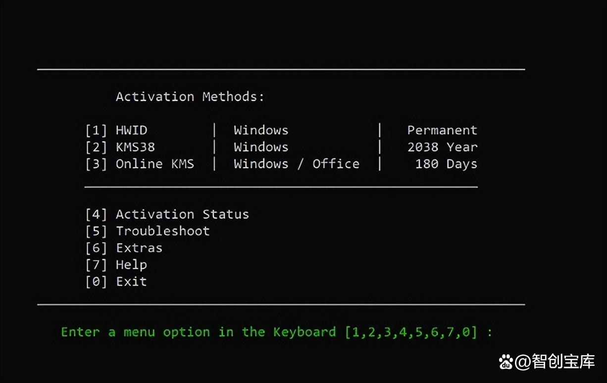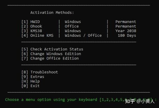 根据脚本提示,在命令提示符中选择您希望的激活选项: