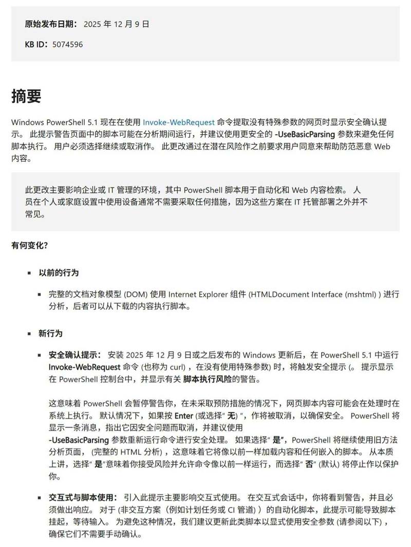 微软强烈建议,用户在处理不可信网页时,应使用 -UseBasicParsing 命令行参数,从而阻止系统解析并执行嵌入的脚本。