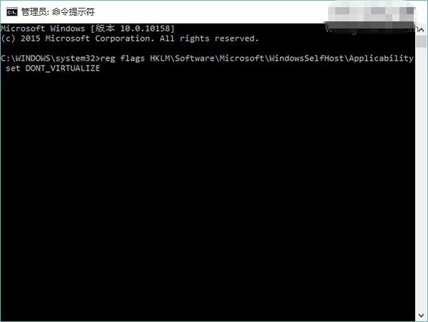 reg flags HKLM\Software\Microsoft\WindowsSelfHost\Applicability set DONT_VIRTUALIZE