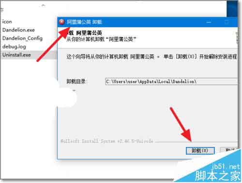 3、程序还是提供卸载Uninstall.exe,双击进行卸载删除阿里蒲公英。