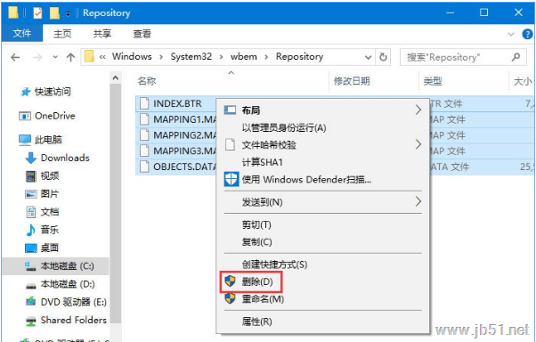 2、然后定位至C:\Windows\System32\wbem\Repository,删除该文件夹下的所有文件。