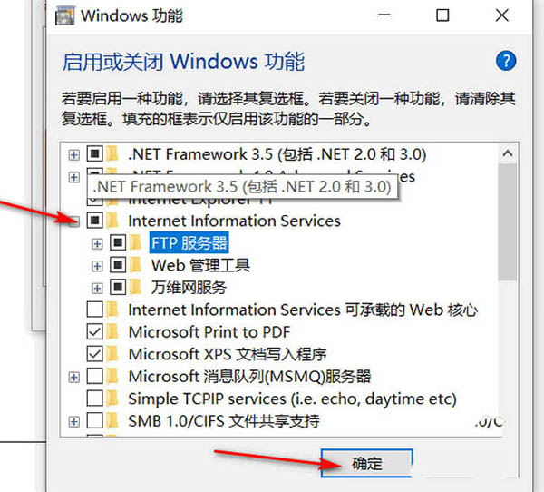 2、然后,我们将【Internet Information Services】下面的的所有项目进行选择,点击确定,等待安装。