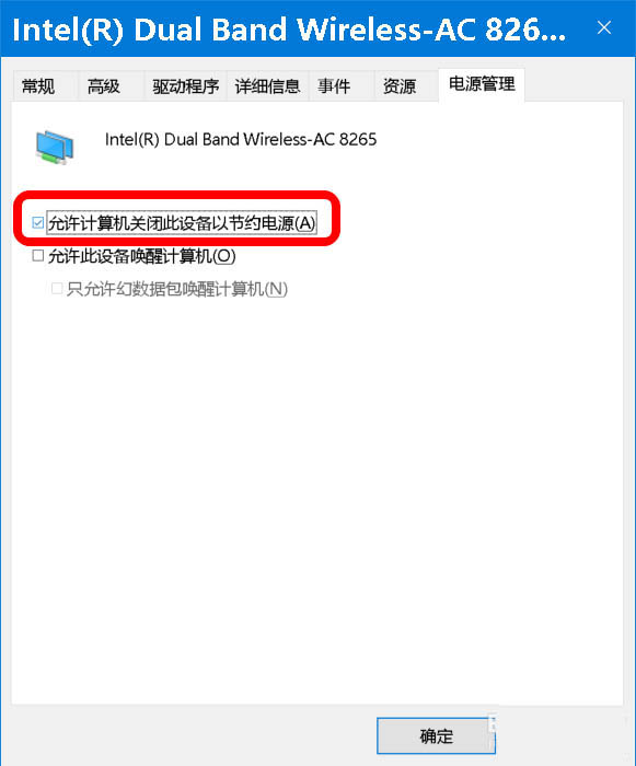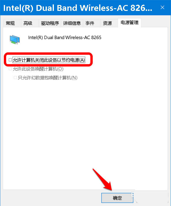 第二步:取消 电源管理中 允许计算机关闭此设备以节约电源 复选。