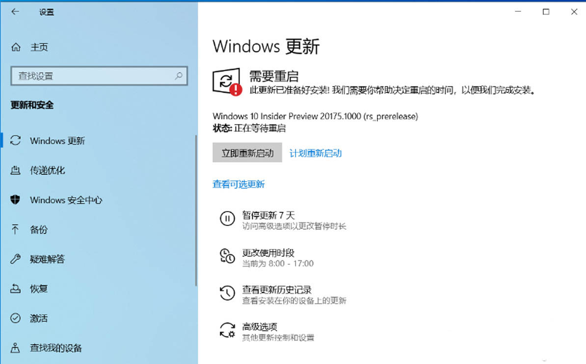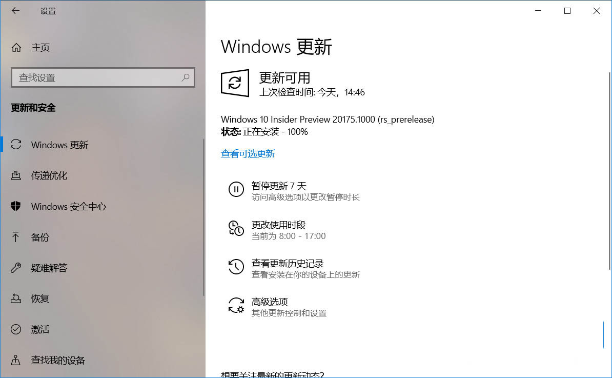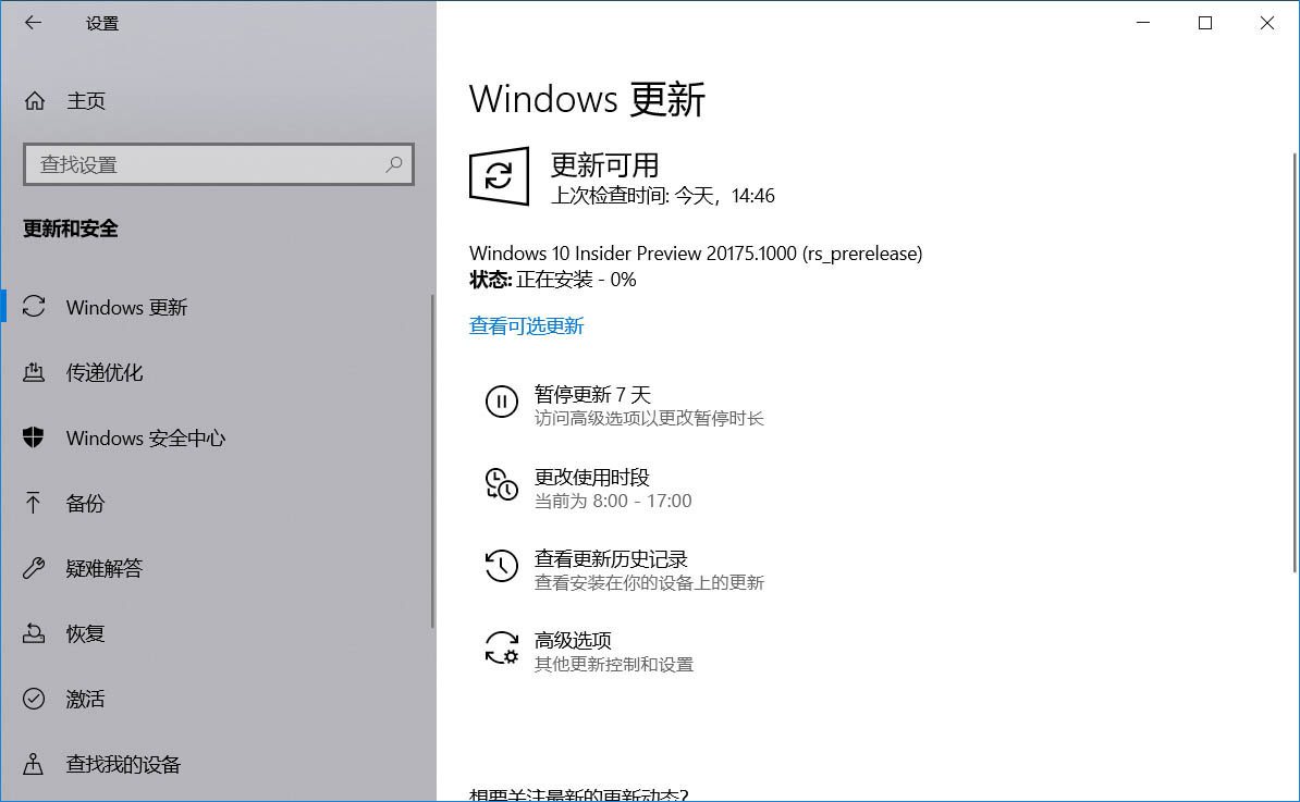 ◆ 更新Windows 10 Insider Preview 20175.1000 (rs_prerelease)系统