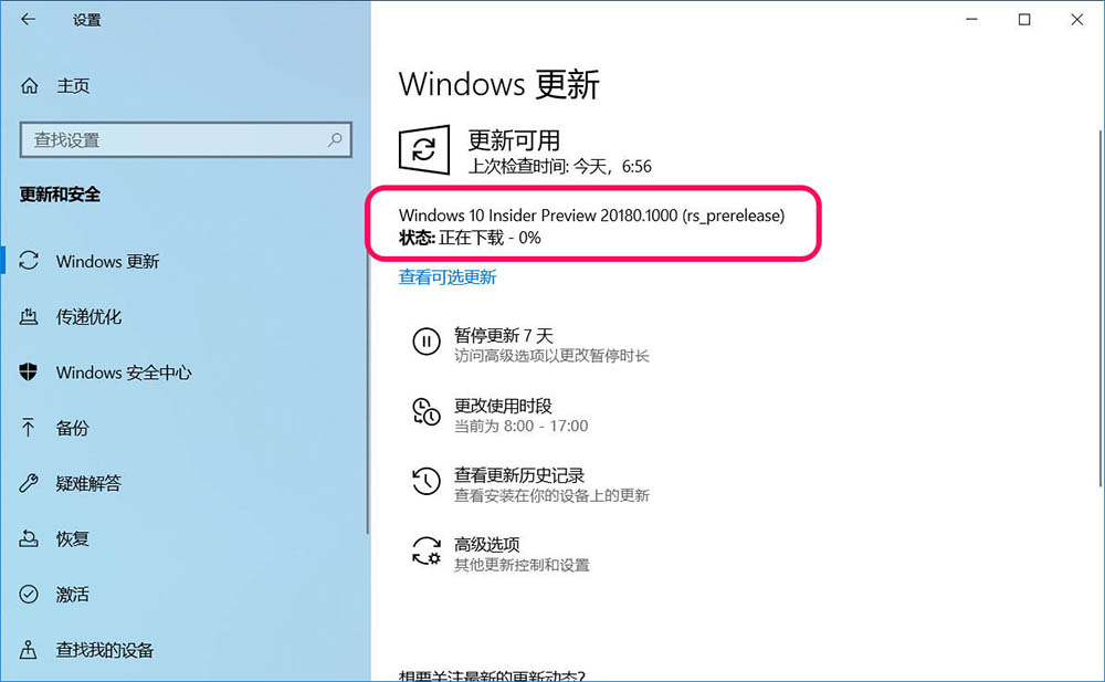 Win10 Dev预览版Build 20180怎么手动下载更新?