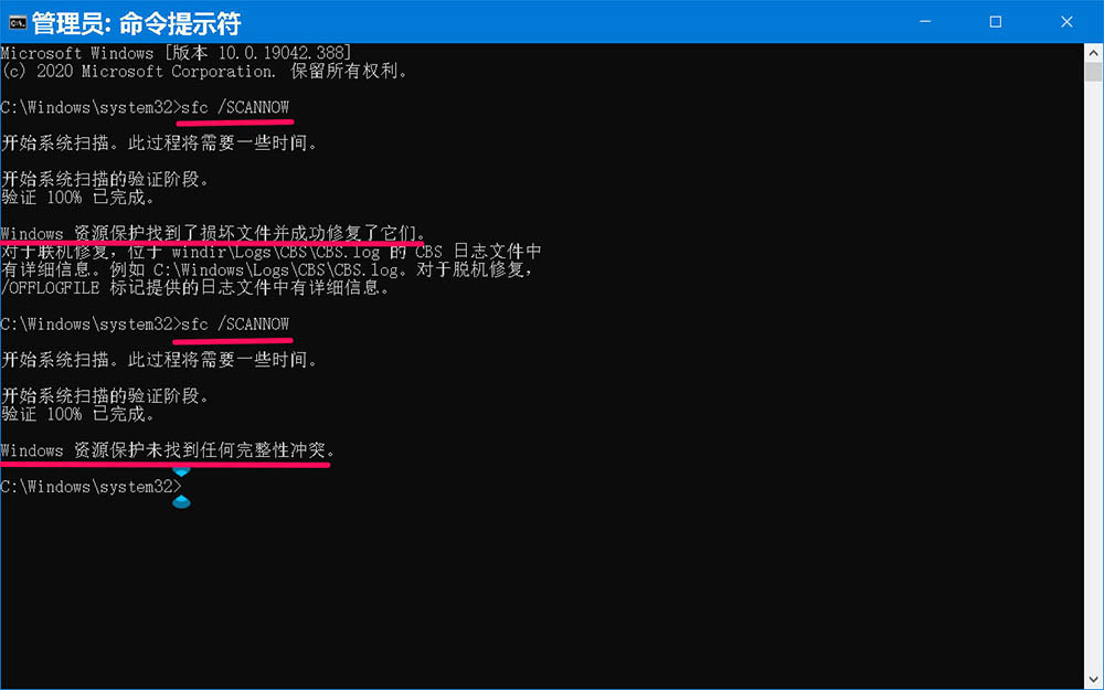 ◆ 检查修复Win10-2004 Build 19042.421系统
