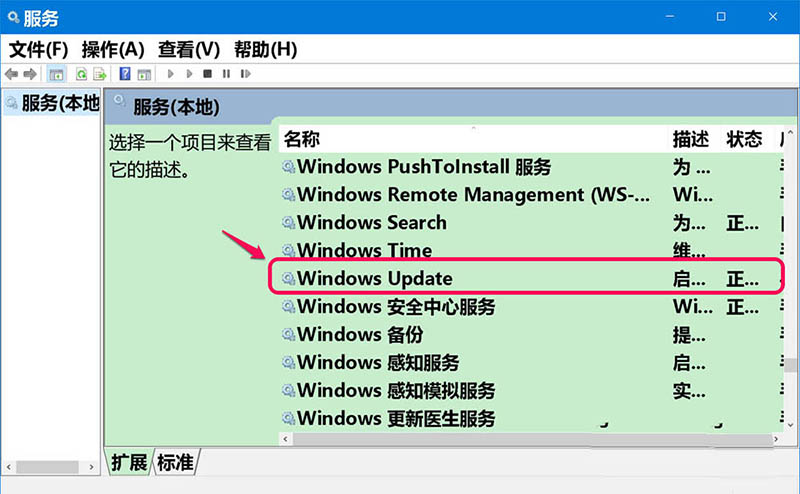 退出资源管理器,再进入本地服务窗口,操作使 Windows Update 的启动类型为:手动,服务状态为:正在运行。
