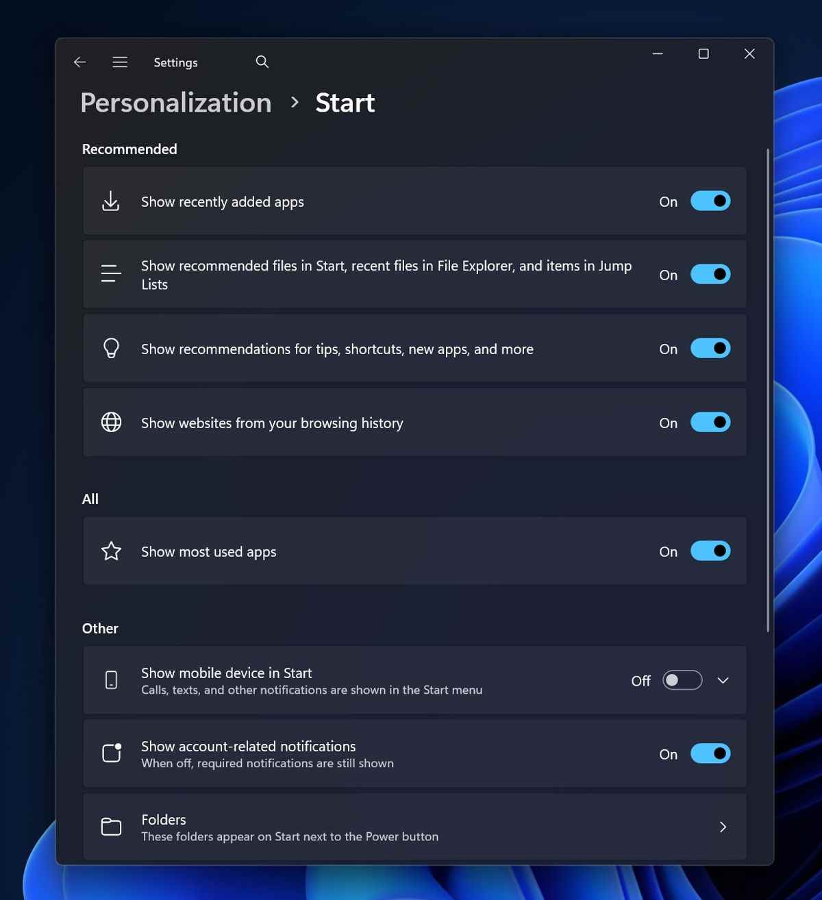 Win11可隐藏开始菜单推荐内容同时禁用两大核心功能