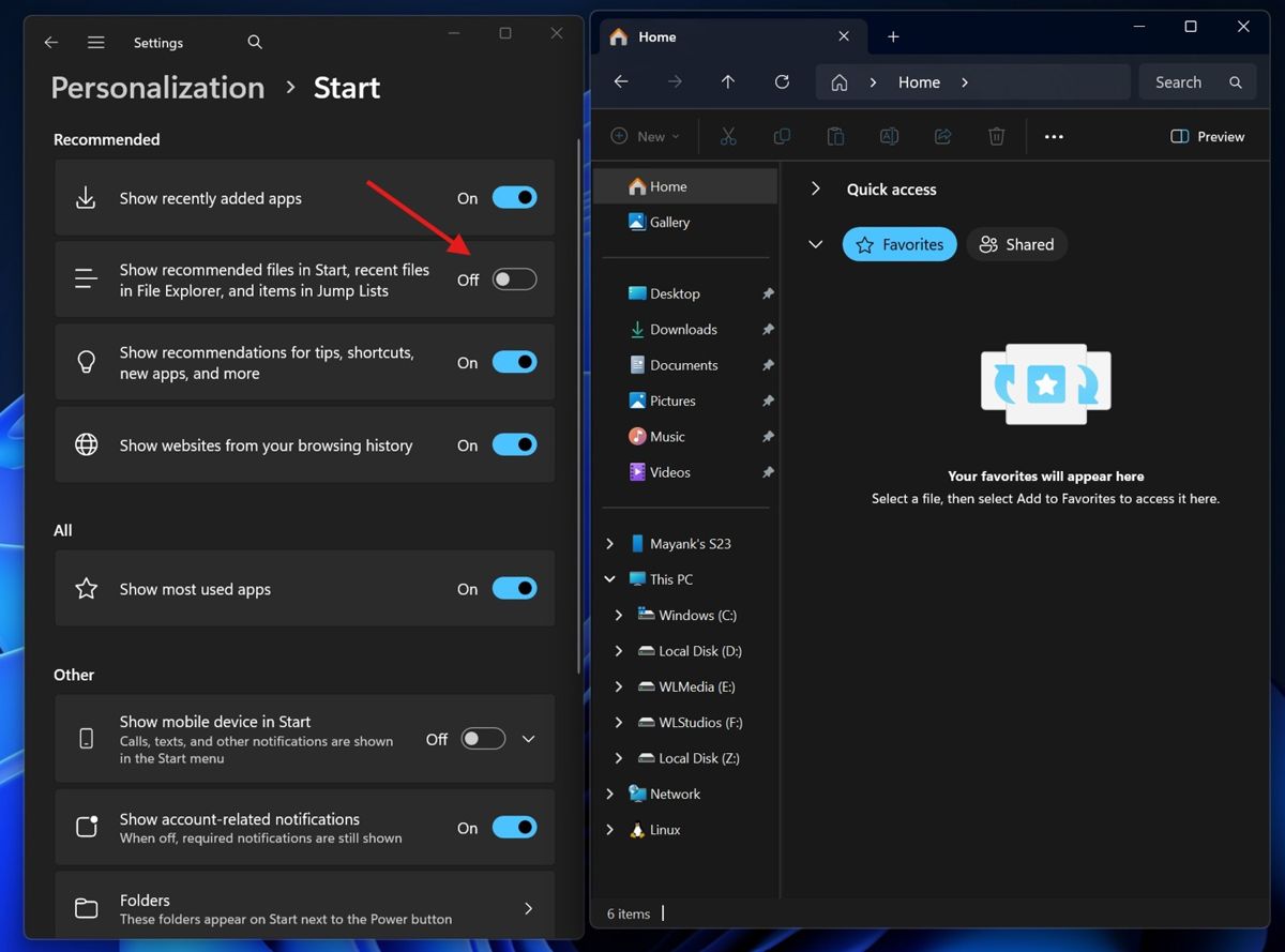 科技媒体 Windows Latest 昨日(11 月 3 日)发布博文,报道称部分 Windows 11 用户反馈,在安装 10 月可选更新 KB5067036 之后遇到新 BUG,如果选择禁用开始菜单的“推荐”部分,系统会同时禁用文件资源管理器中的“最近使用的文件”功能和任务栏的“跳转列表”。