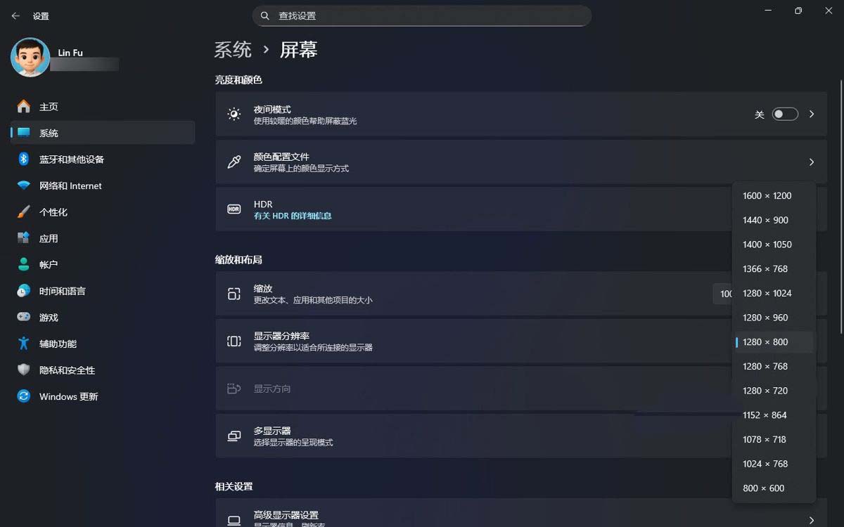 调整显示分辨率是改变屏幕内容大小的另一种方式。提高分辨率会让界面元素看起来更小(因为像素密度更高),而降低分辨率则会让内容显得更大。