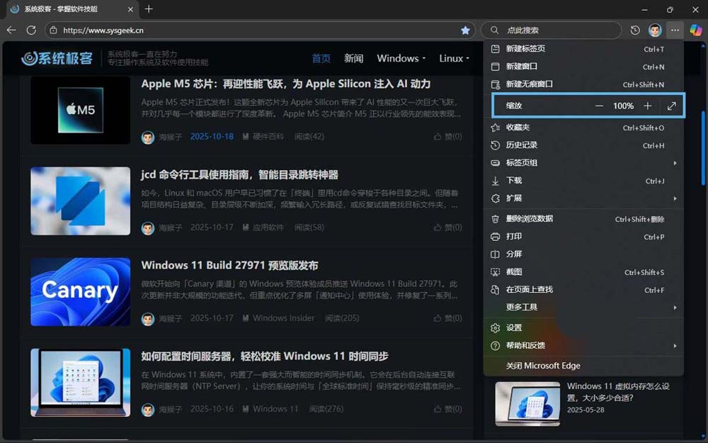 1、像 Chrome、Edge 和 Firefox 这样的主流浏览器,可以使用键盘快捷键,来快速放大和缩小: