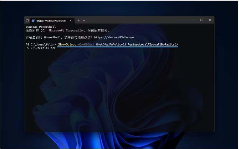 如果你更偏向使用 PowerShell 进行自动化运维或脚本编写,可以通过以下方式来重置 Windows Defender 防火墙: