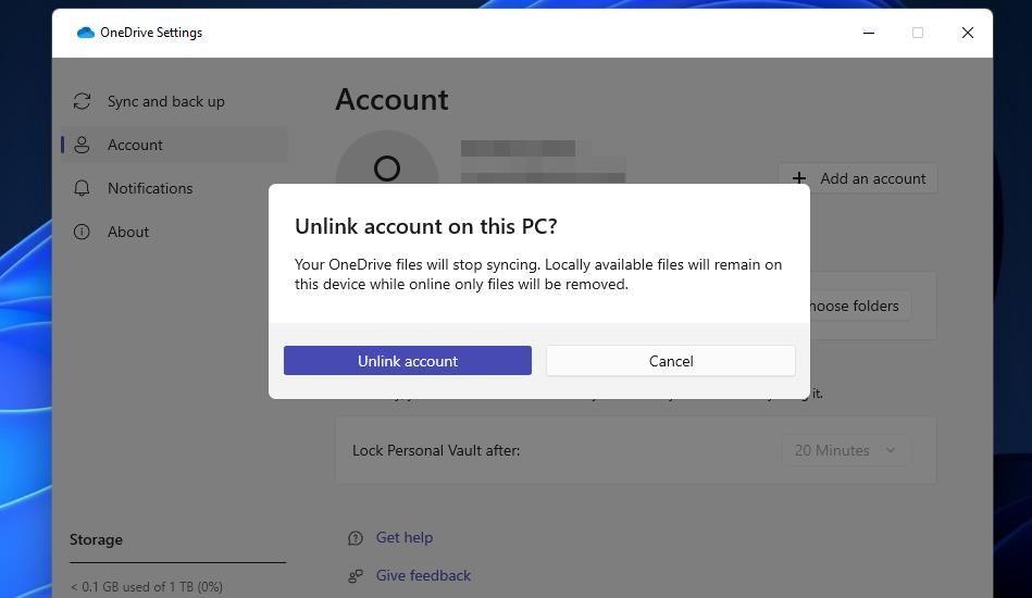 解除和重新链接您的OneDrive帐户