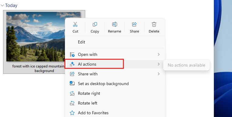 文件资源管理器的右键菜单里找到了 AI 动作子菜单,但鼠标悬停时没有显示任何 AI 动作