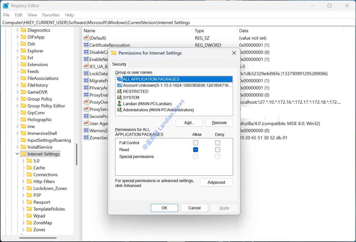 在 Windows 11 中 ALL APPLICATION PACKAGES 是个特殊的用户组,微软使用该用户组运行权限受限的进程或应用程序,通常情况下该用户组用于文件和文件夹的访问控制。