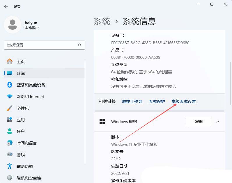 2、接着,在打开的界面中,选择打开“高级系统设置”。