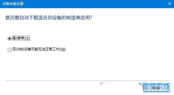 4、设备安装设置,您希望 Windows 为设备下载驱动程序软件和真实图标吗?将是,自动执行该操作改为否,让我选择要的操作,然后选择从不安装来自 Windows updata 的驱动程序软件,最后再点击确定即可;