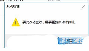 8、设置完成后,系统属性会提示,要使改动生效,需要重新启动计算机,点击【确定】即可;