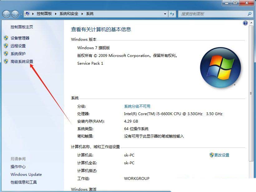 2、接着,在打开的界面中,点击左侧的“高级系统设置”。