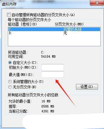 5、此时,按照用户实际情况进行设置虚拟内存大小即可。