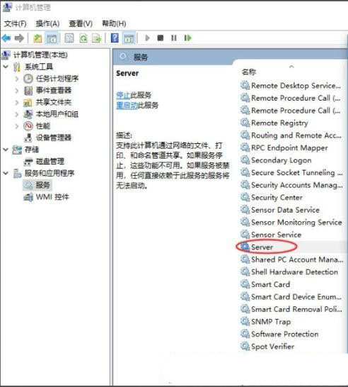2、服务列表中,找到并停止Server服务(支持此计算机通过网络的文件、打印、和命名管道共享。如果服务停止,这些功能不可用。如果服务被禁用,任何直接依赖于此服务的服务将无法启动);