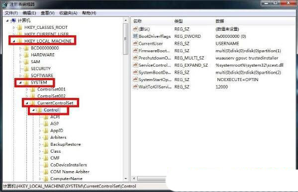2、注册表编辑器窗口中,依次展开到:HKEY_LOCAL_MACHINE/SYSTEM/CurrentControlSet/Lsa