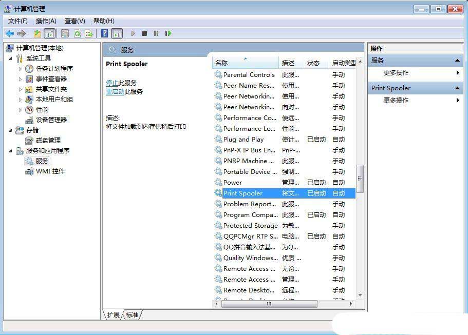 2、接着,在打开的界面中,依次点击展开“服务和应用程序-服务”,再找到并双击打开其中的“Print Spooler”服务项。