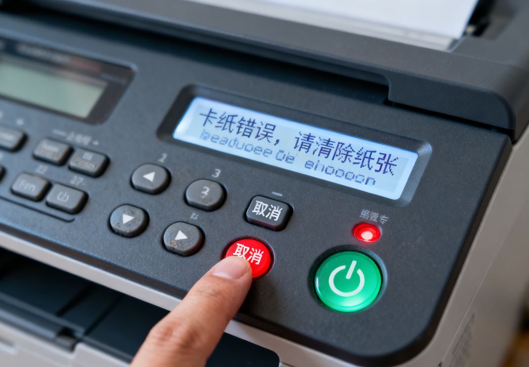 ③ 指示灯异常:状态指示灯持续闪烁或常亮,提示缺纸、卡纸、墨粉不足或内部错误。