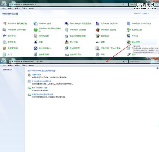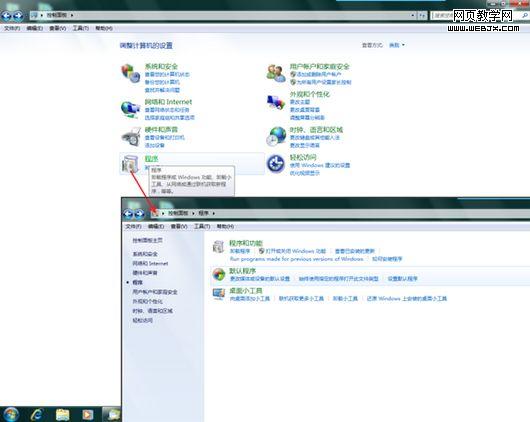 打开控制面板,默认情况下控制面板是以类别方式排列的,所以如下图所示,我们需要点击“程序”,才能找到默认程序的设置项,在这里我们才能更改指定类型文件的打开方式及默认的程序设置。