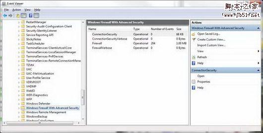 在Vista firewall里可以为把日志事件设置为记录到文件中(默认路径为Windows\System32\LogFiles\Firewall\pfirewall.log)。而在Windows 7中,为了更容易访问,还可以把日志事件写入“事件查看器”的“应用程序和服务(Applications and Services)”中。并通过打开“事件查看器”,在左边面板,点击高级配置中的“应用程序和服务日志” -- Microsoft --Windows --Windows Firewall with Advanced Security对日志进行访问,如图4所示。