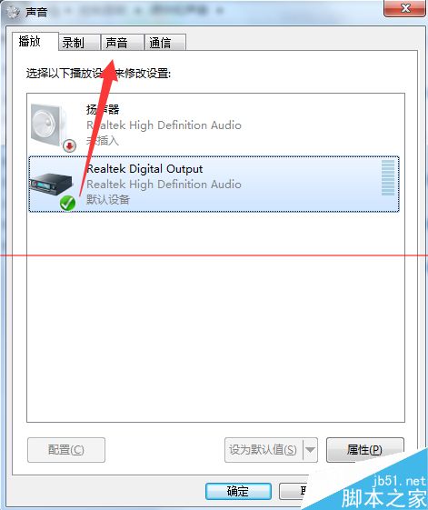 4、进入声音属性对话框,点击上方菜单栏处的【声音】