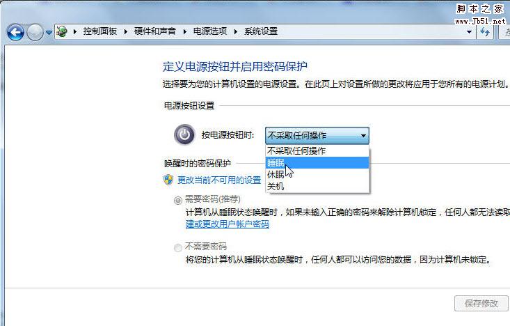 4、在“按电源按钮是”,选择“不采取任何操作”,OK,搞定,再按键盘上的POWER 键,不会在出现关机的杯具了。