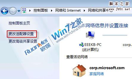 4.单击页面左上角的“更改适配器设置”