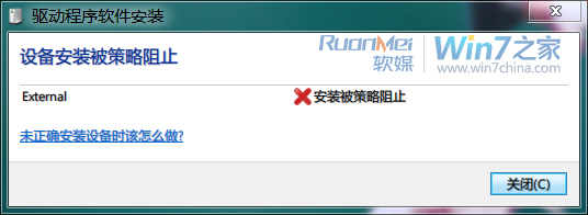 设置成功,无需重启。当插入新的可移动存储设备(从未在此电脑上运行过的)时,在安装驱动的过程中,弹出以下提示,成功阻止。