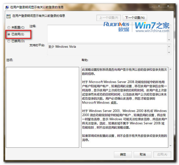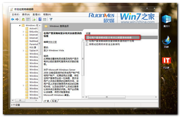 双击选择【在用户登录期间显示有关以前登录的信息】