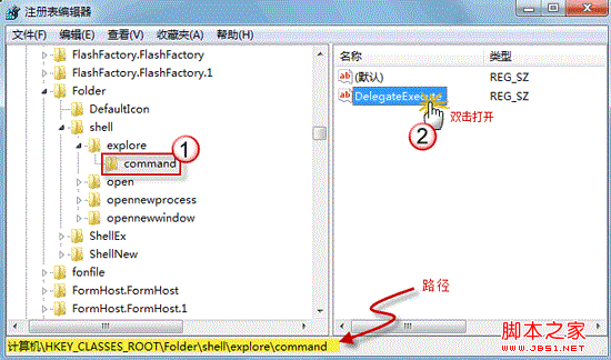 在右边细节窗口中,找到值 DelegateExecute,并双击打开。(注册表修改不当会引起严重问题,建议先对此项做好备份再修改)