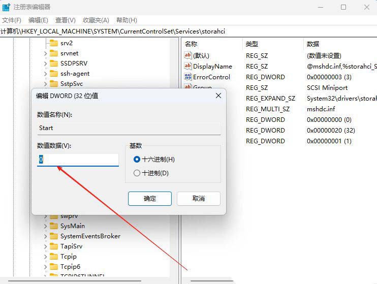 4、随后,修改“数值数据”值为“0”,再点击确定即可。