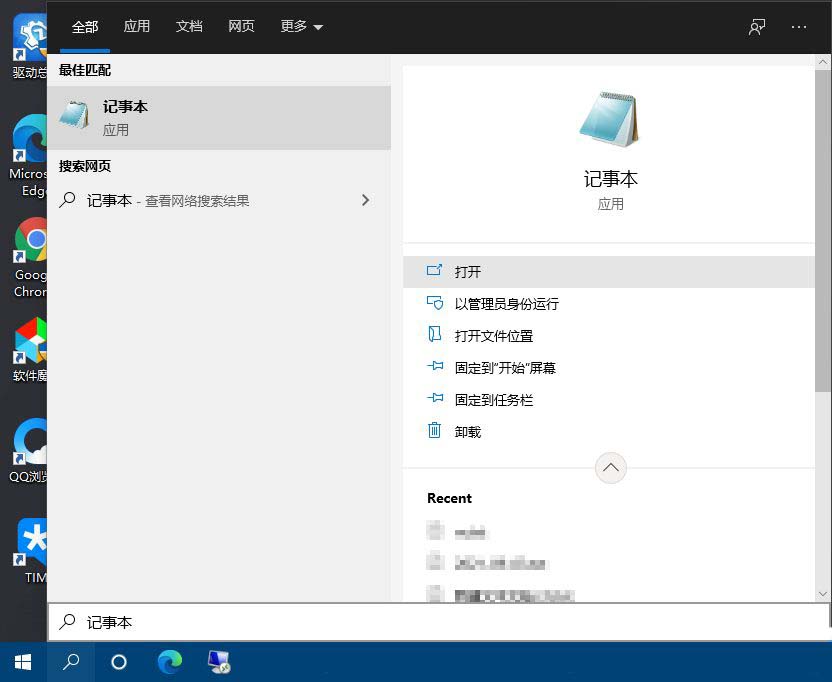 1、按【Win + S】组合键,或点击开始图标旁的【搜索图标】,打开Windows 搜索,搜索框输入【记事本】,然后点击【打开】系统给出的最佳匹配记事本应用;