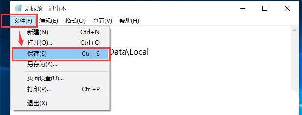 3、点击左上角的【文件】,在打开的下拉项中,选择【保存(Ctrl+S)】。选择保存位置,比如【桌面】,输入【文件名(必须以 .bat 结尾)】,更改保存类型【所有文件】,最后点击【保存】;