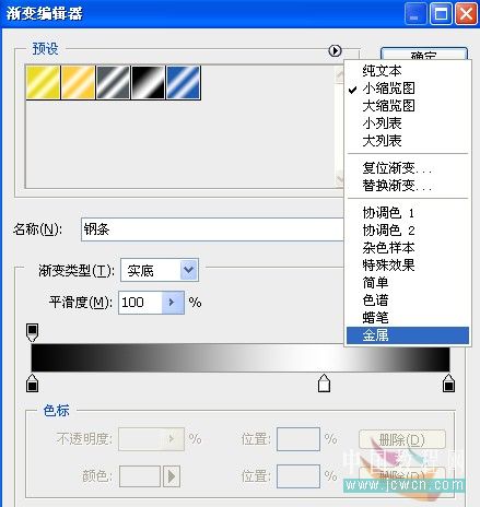 12、选择渐变填充工具,载入或替换金属,选择钢条渐变。