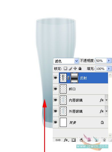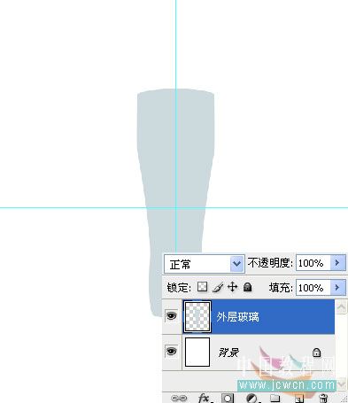 8、按住Ctrl键点击内层玻璃图层,新建一层,命名“杯口”,填充图层颜色为:#99b2bb,不透明度20%。