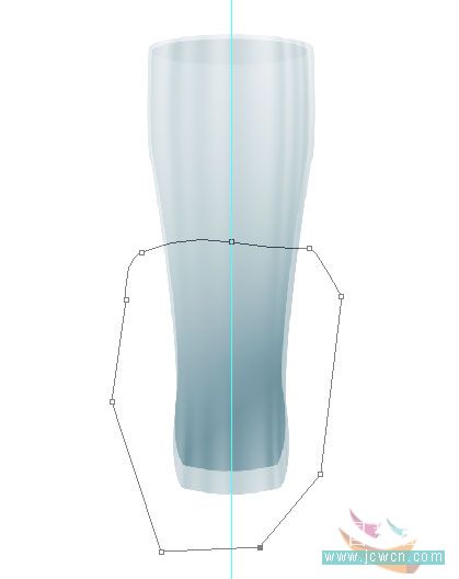 1、新建一个800*1100,300像素的新文件,居中设定垂直参考线,选择钢笔工具在路径模式下画出半个玻璃杯的路径,如图。