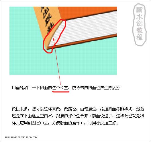 #p# 9、用画笔加工一下侧面的这个位置,使得书的侧面也产生厚度感。