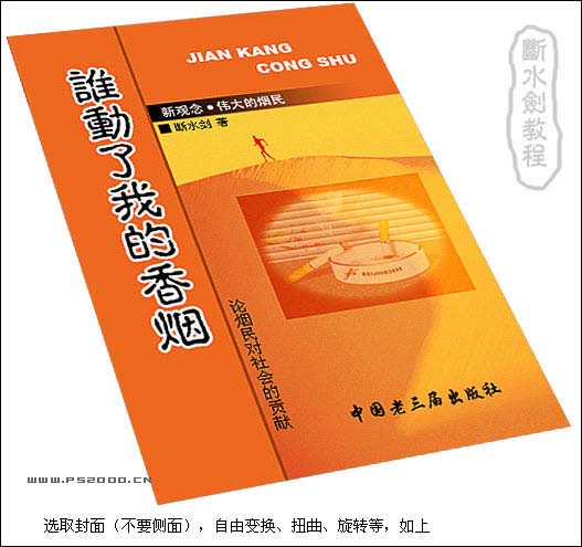 #p# 1、打开封面素材,选区正面部分,复制到新的图层,自由变换,扭曲,旋转得到下图效果。