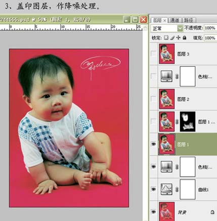 3、新建一个图层,按Ctrl + Alt + Shift + E盖印图层,适当对人物做降噪处理。