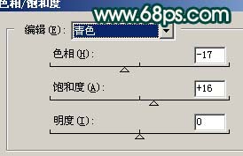 9、创建色相/饱和度调整图层,参数设置如图15,16,效果如图17。