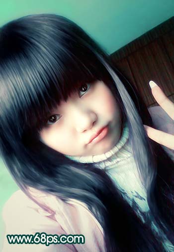 <图3> #p# 3、新建一个图层,图层混合模式改为“颜色”,把前景颜色设置为:#AAFBF0,用画笔涂抹墙壁部分,给白墙上色,效果如图4。